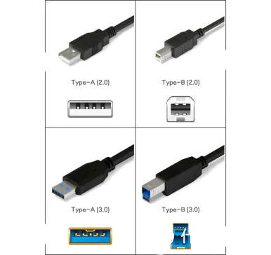 This is our most commonly used USB interface shape; rectangular and supports hot plug. They are heavily used to connect computer peripherals, such as, but are not limited to, printers, keyboards, mice, flash drives. After a general, rectangular Type-A interface exists in various versions; USB 2.0 and USB 3.0. USB 3.0 typically has edges that are blue and will have faster throughput compared to a standard black USB 2.0.