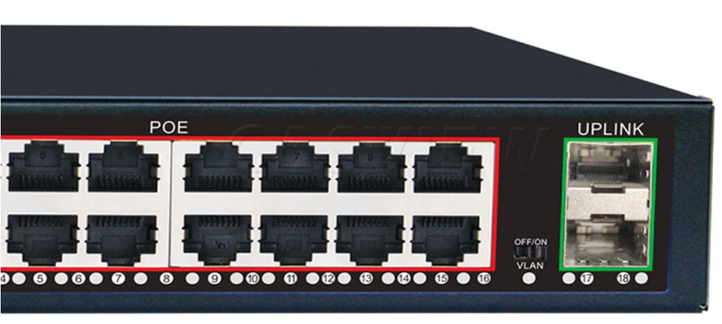 d) PoE- using a poe Ethernet Switch with gigabit uplink means that both data and power can be transmitted efficiently and not require an additional power supply in user applications like IP cameras, access points, and VoIP phones.
