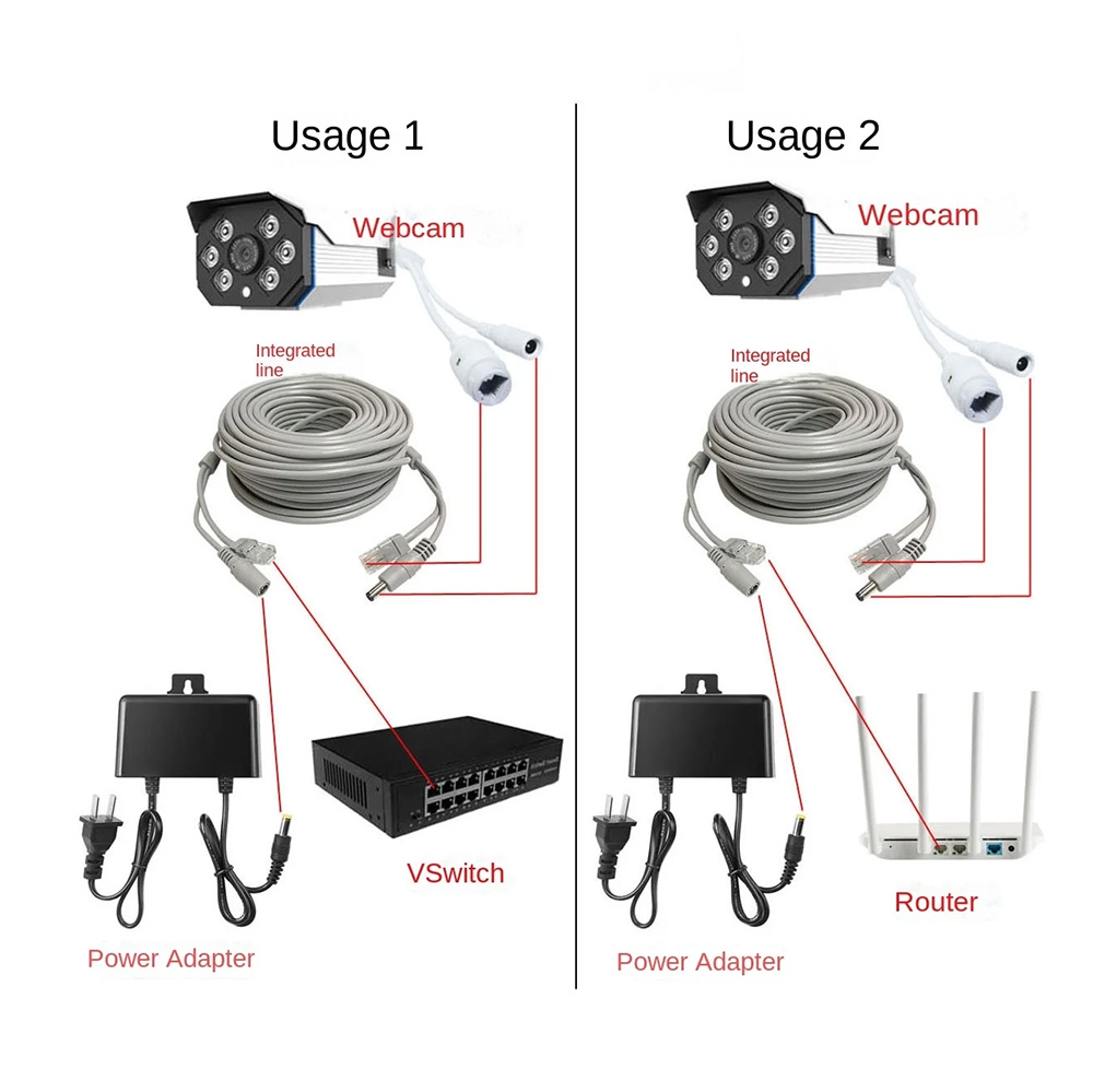 20M Network & power Cable 2 in 1, 4-core Ethernet cable+2-core power supply |