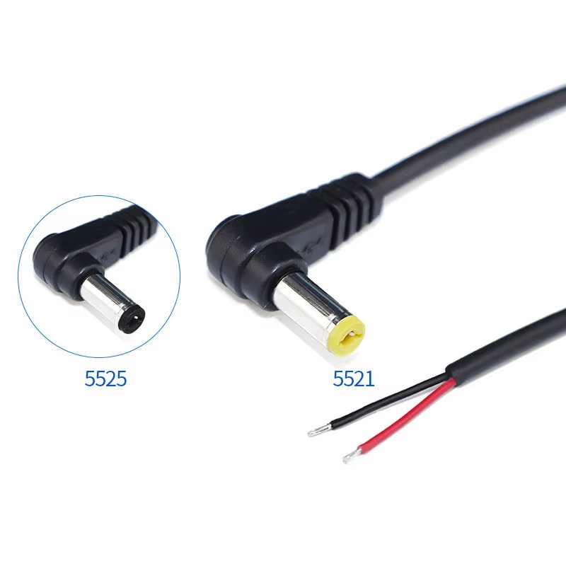 90 Degree L shape DC male Cable with 5.5*2.1mm or 5.5*2.5mm plug optional