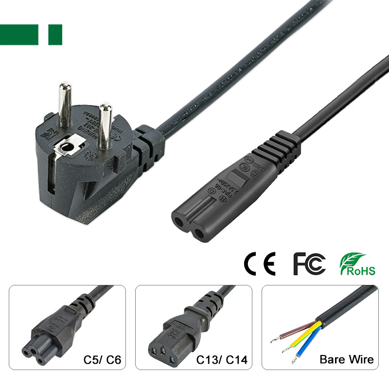 AC Power Cable with EU Type A Plug to C7 Connector. OD: 3*0.75mm², Max. 500W, 1.5M, CCA.
