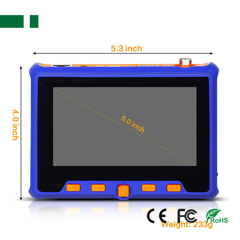 • Product description: 5-inch TFT LCD Screen 6 in 1 CCTV Tester PAL/NTSC (Auto adapt), Hybrid camera tester is able to test and debug coaxial TVI camera & AHD camera & CVI camera and traditional CVBS analog camera.