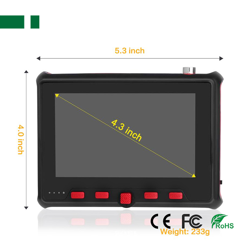 TVI tester support 720P25F/30F 108OP25F/30F(3MP/4MP/5MP/8MP TVl camera tester is optional*)