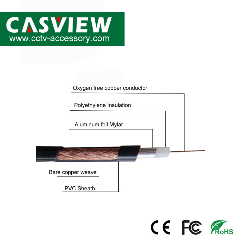 | C-RG59/96 | RG59 75-4 Coaxial Cable with Copper Conductor, Pure Copper 96 Braiding Net Shielded, 200M/Roll |