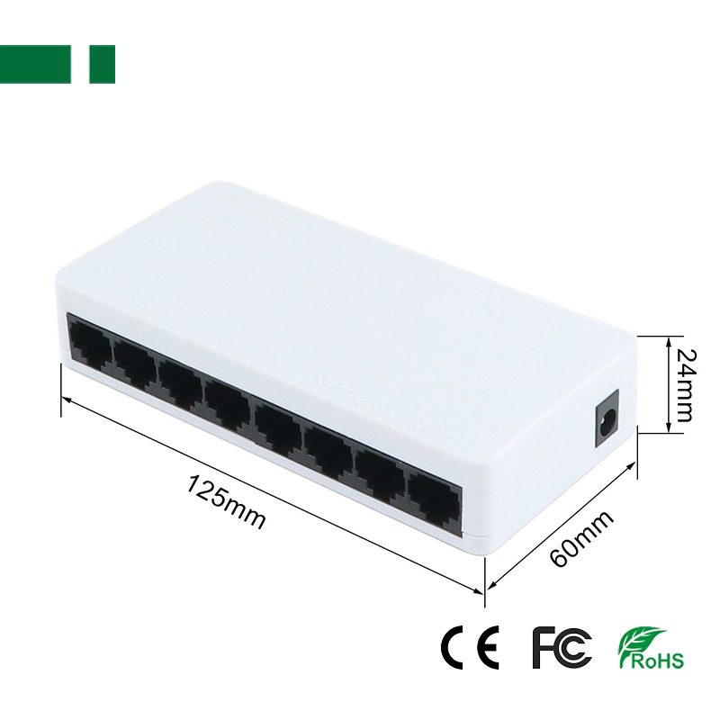 100Mbps non-managed switch, provide 8* 10/100Mbps RJ45 adaptive ports, supporting all port line speed forwarding, mute operation, easy to use, no configuration, plug and play, suitable for small home office, small and medium business environment.