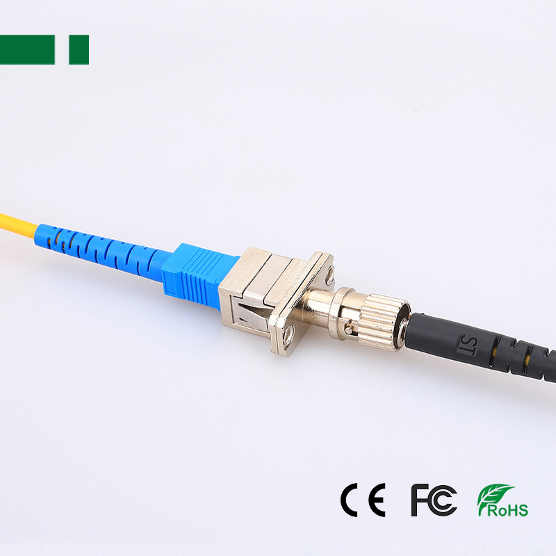 SC Female to ST Female hybrid adapter, using embedded fiber, ferrule and sleeve precision connection technology, Converts SC connector to ST connector, Variable SC interface conversion ST interface, Provides a simple and reliable solution for connecting two or more different optical fiber transmission joints, users can choose 9/125, 50/125, 62.5/125 and other fiber types and the corresponding connector type.