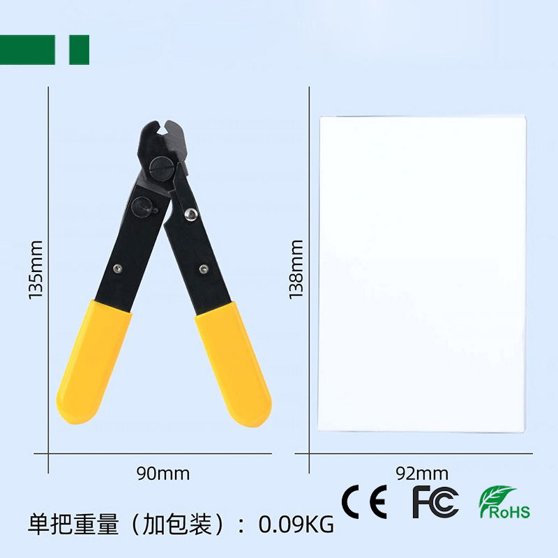 the v-shaped mouth of the clamp on blade and 140 microns of open hole can be used for stripping 125 mu 250 mu m m optical fiber cladding