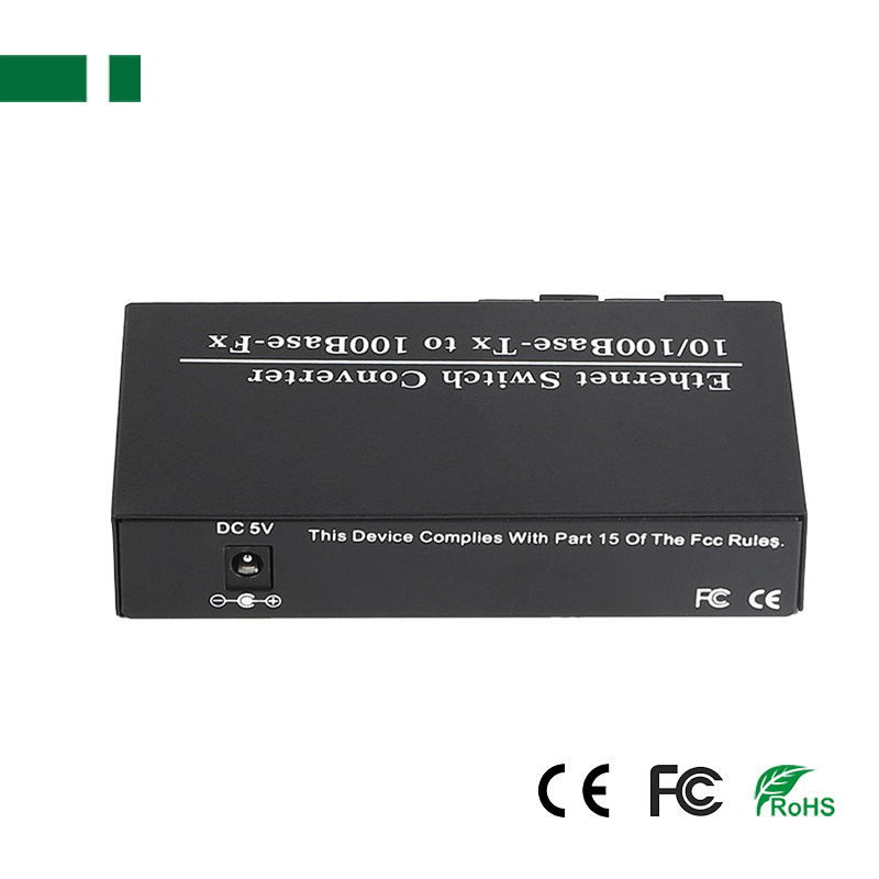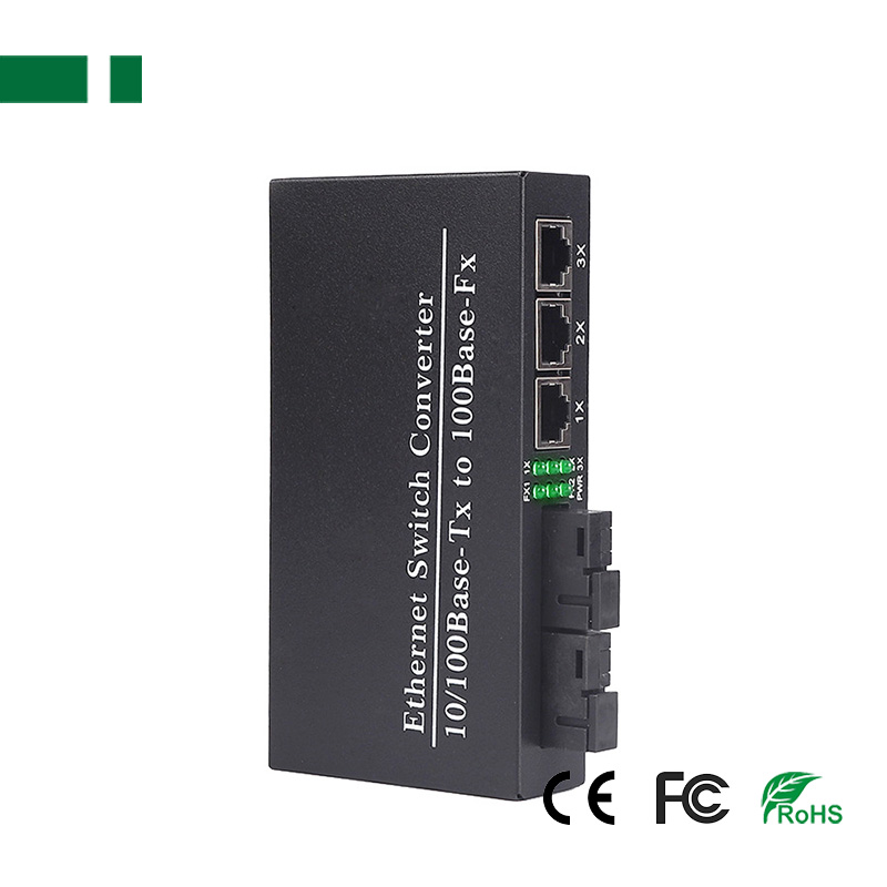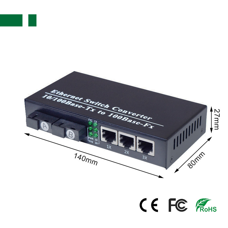 2*100Mbps full-duplex fiber port and 3*100Mbps Ethernet port.