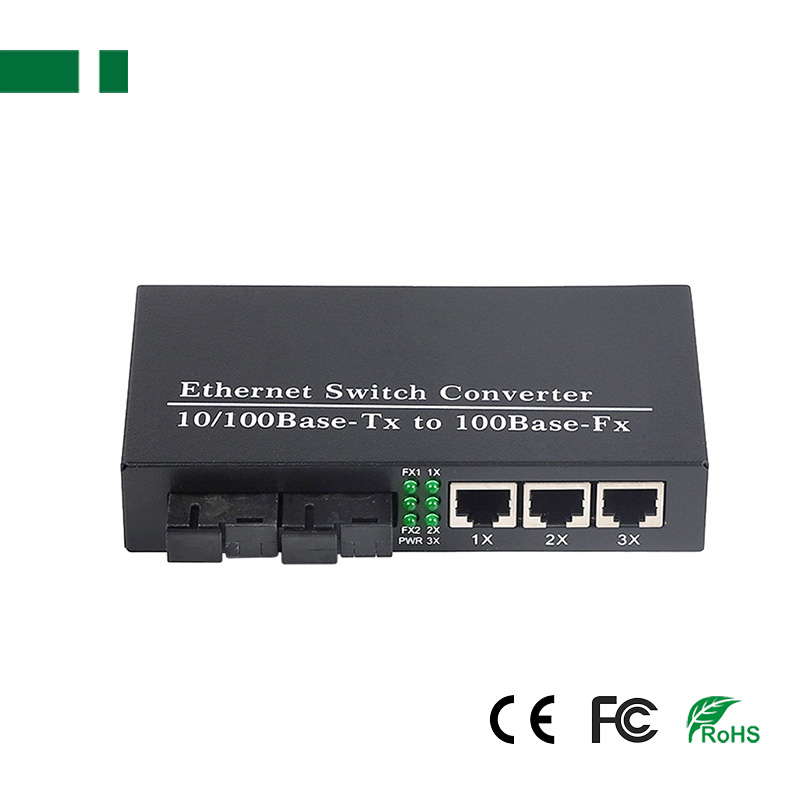 CFS-102-2F3E 100Mbps 2 SFP to 3 RJ45 Fiber Optic Transceiver
