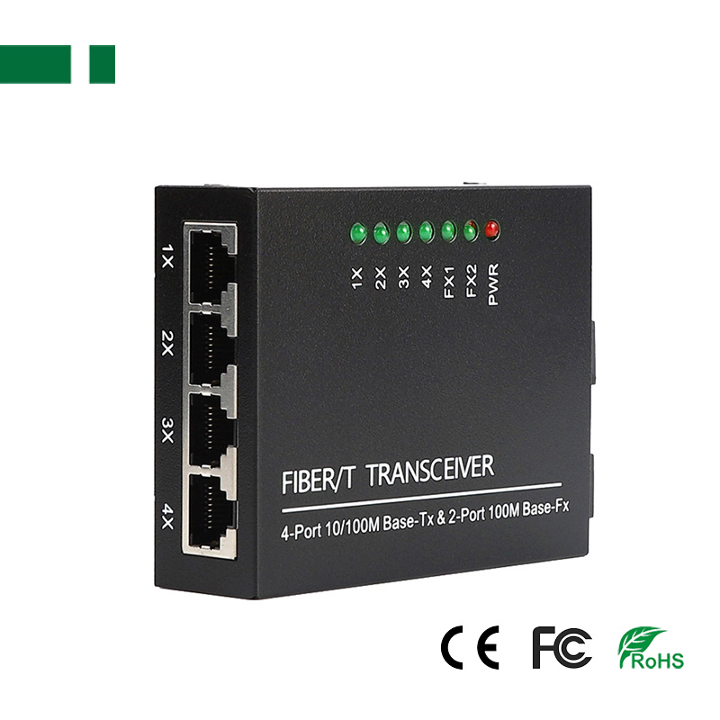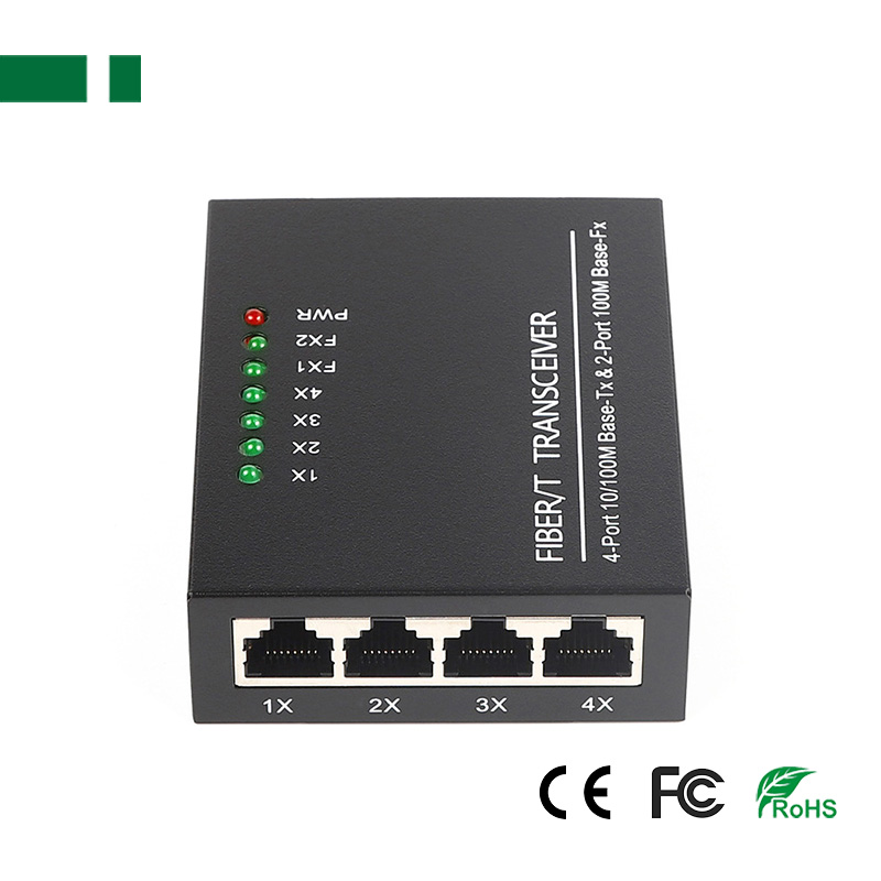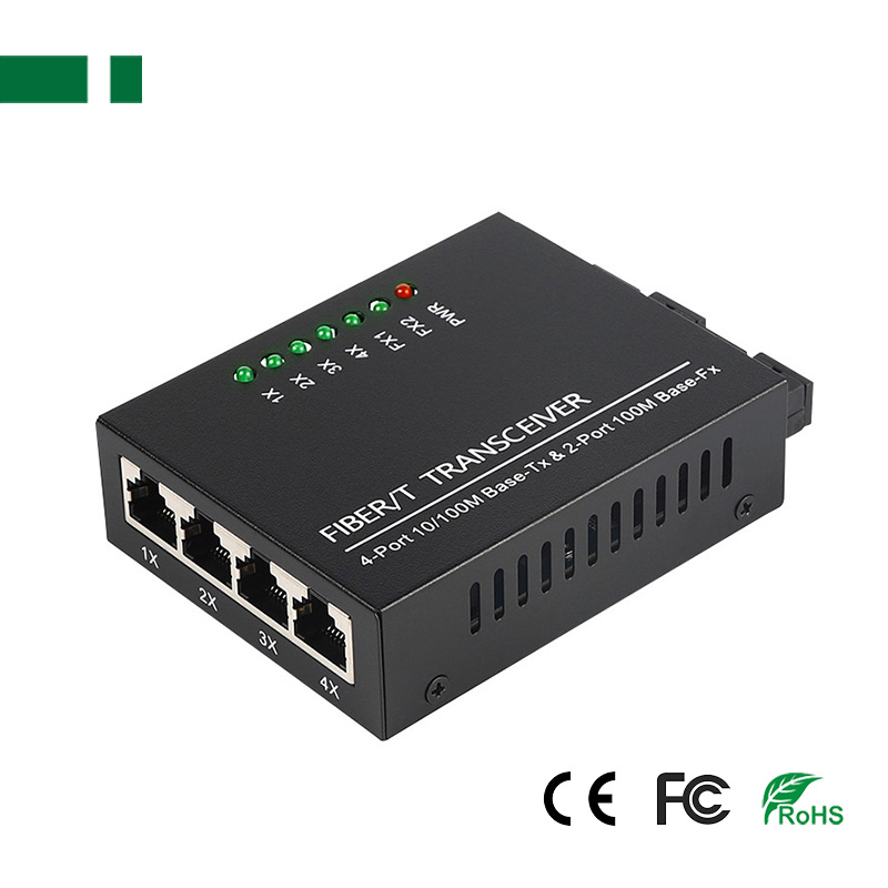 2*100Mbps full-duplex fiber port and 4*100Mbps Ethernet port.