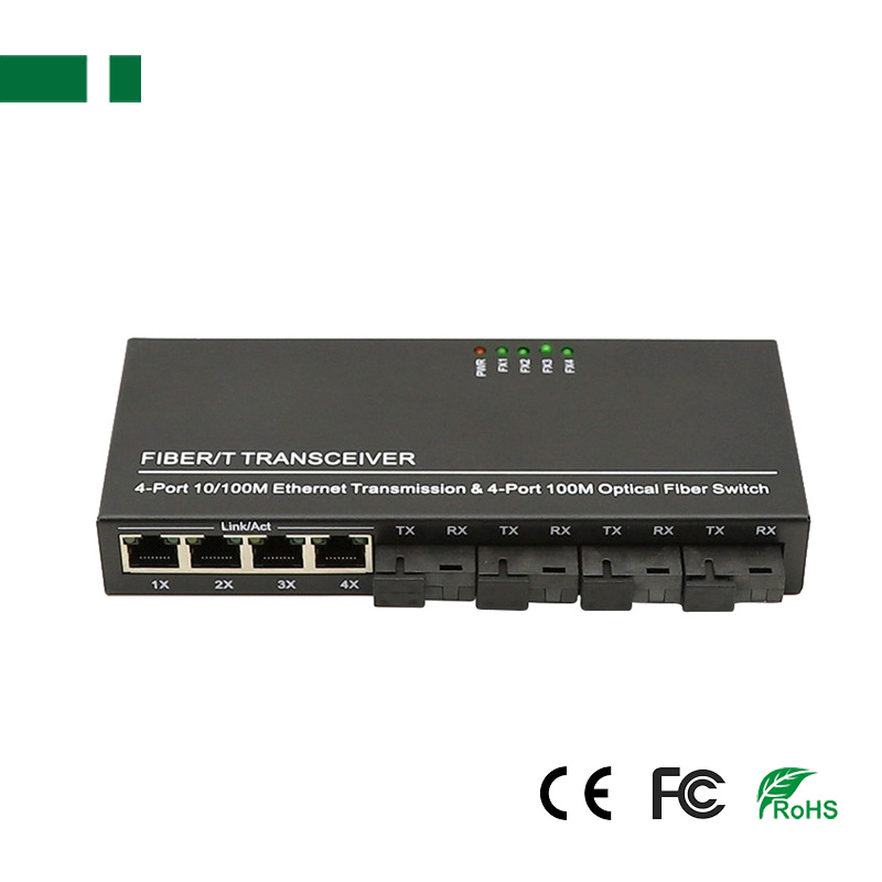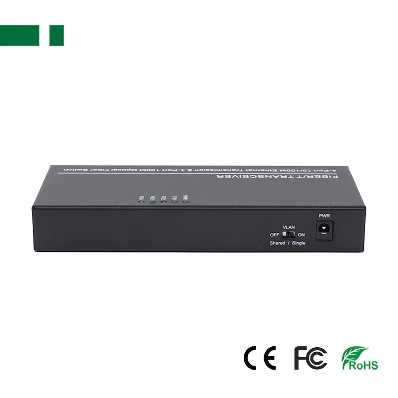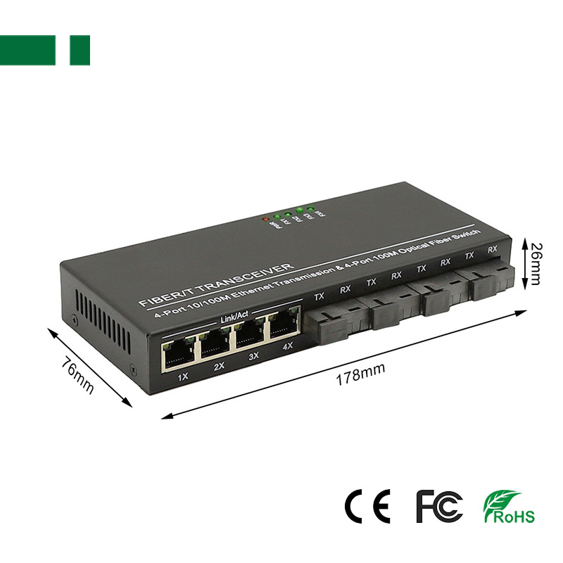 4*100Mbps full-duplex fiber port and 4*100Mbps Ethernet port.