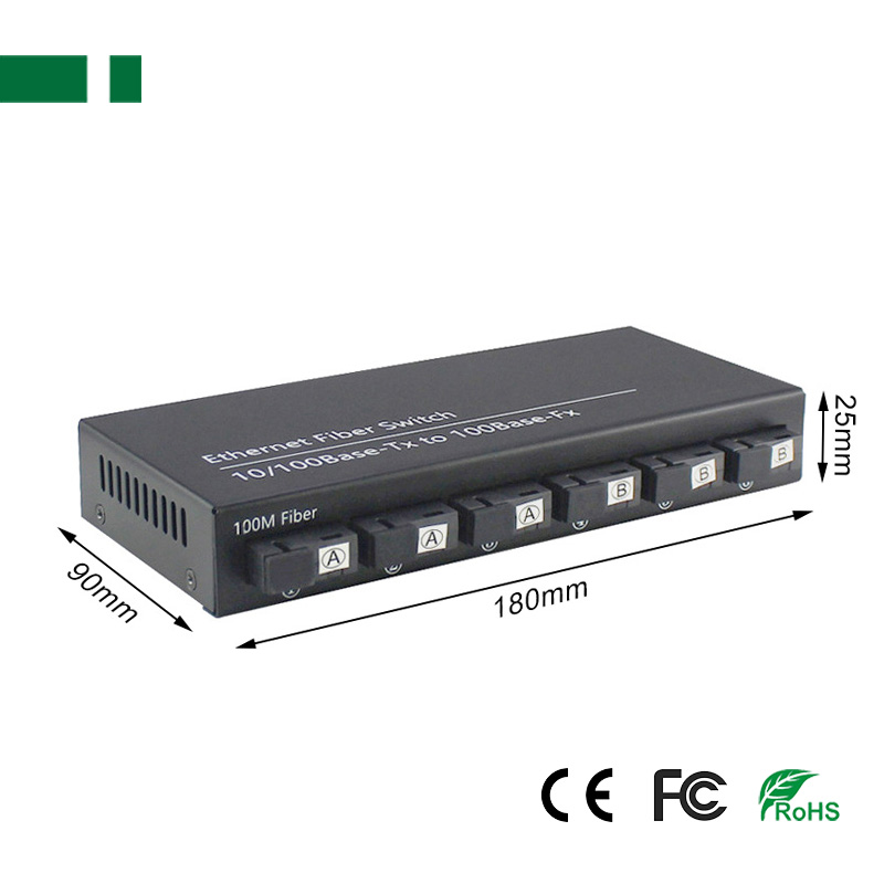 6*100Mbps full-duplex fiber port and 2*100Mbps Ethernet port.