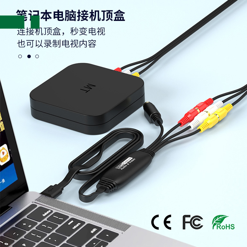 This USB video capture card can transfer video and audio from devices like camcorders, gaming consoles, DV machines, surveillance cameras, DVDs, TV boxes, and medical equipment via AV input to a PC or . It's widely used for applications such as educational live streaming, online meetings, and game recording.