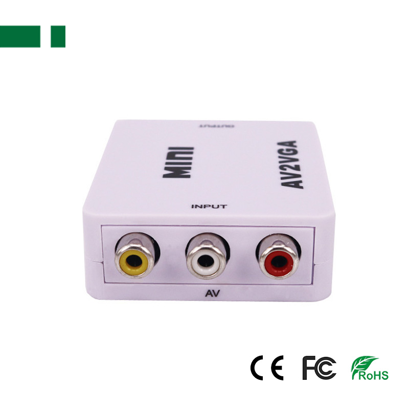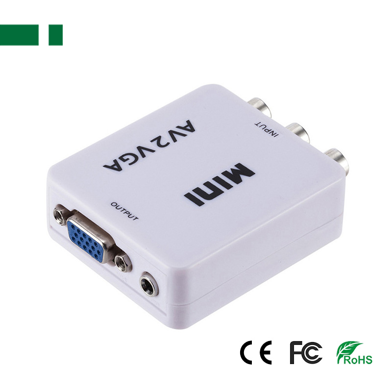 - Product description: AV to VGA signal converter, AV (CVBS) composite video signal and FL/FR stereo audio signal are converted into VGA digital signal