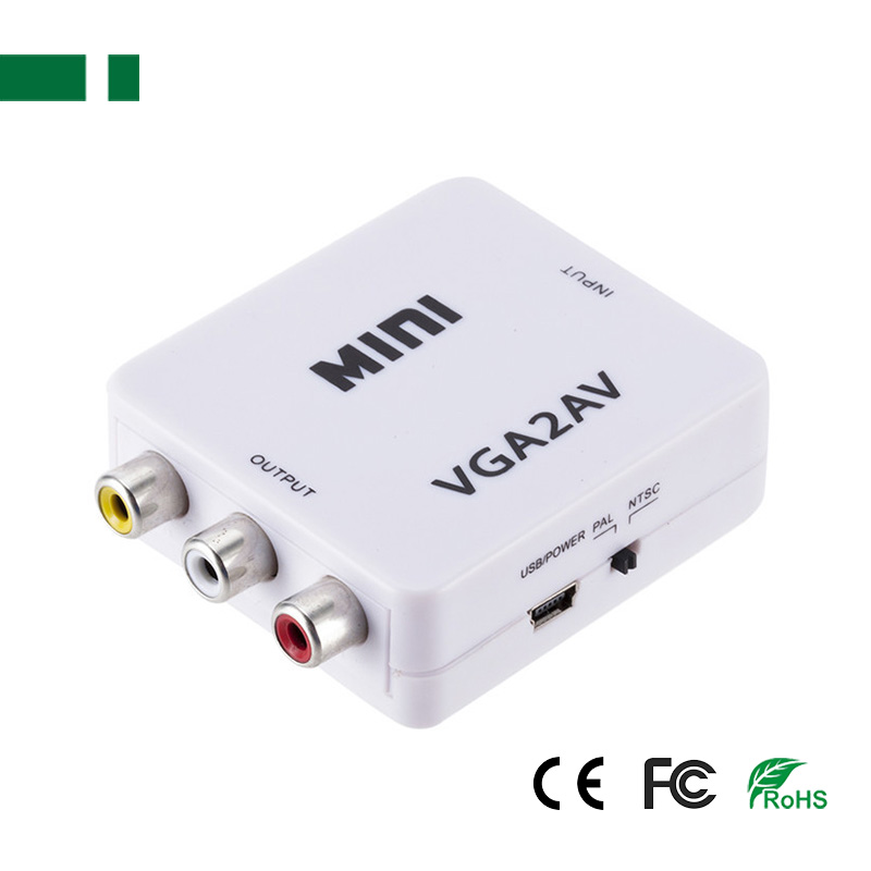 - Product description: VGA to AV converter is used to convert various computer images from 640x480/60 frames to 1920x1080/60 frames. It provides a composite output format