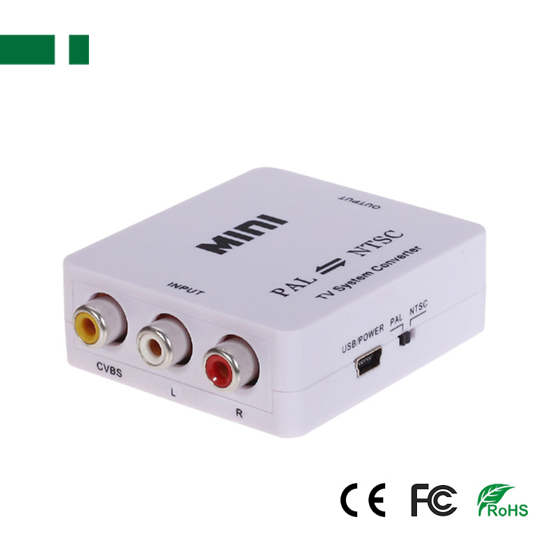 The MINI TV System converter designed for the single-format video equipment (such as NTSC TV sets, projectors, PDP, projection, etc.) to achieve other format which show on TV. It digital transfer device using the most advanced all-digital way on TV and video format for processing, powerful functional and superior performance of the feature from many kinds of video signal formats (Including PAL, PAL60, NTSC3.58, NTSC4.43, SECAM) unified converted into PAL or NTSC standard signal output (as required by the user settings).