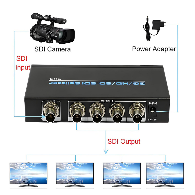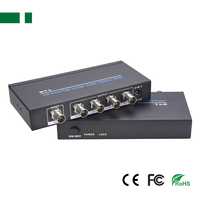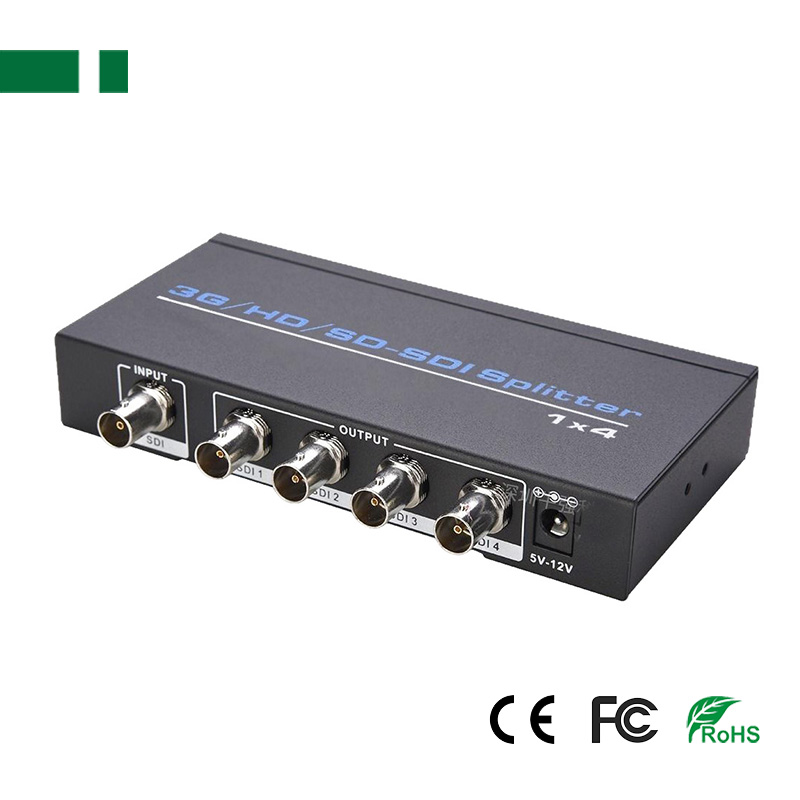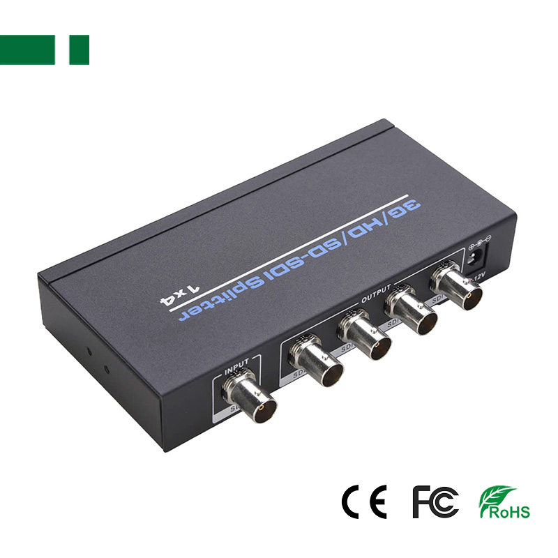 • Product description: This SDI splitter can distribute one SDI signal into four SDI signals, the output interface can connect four SDI display devices and display the same picture.
