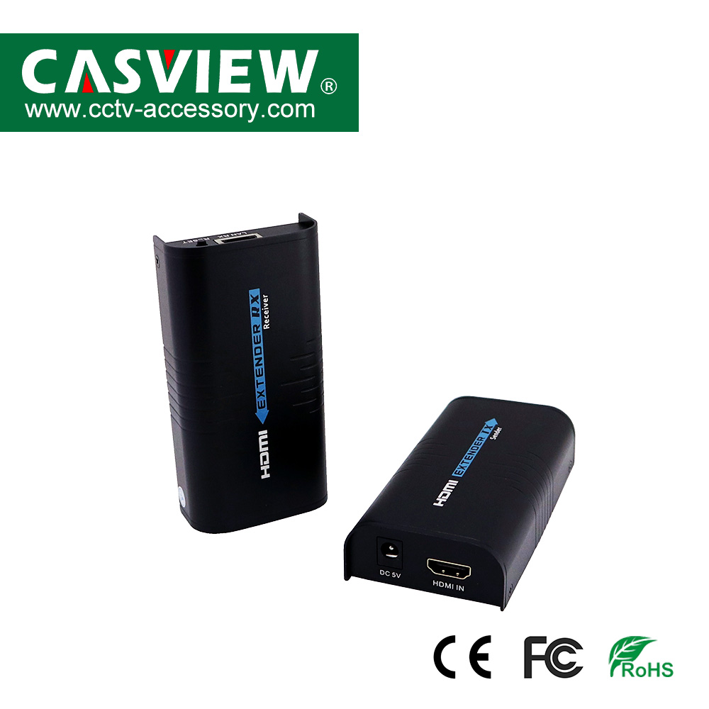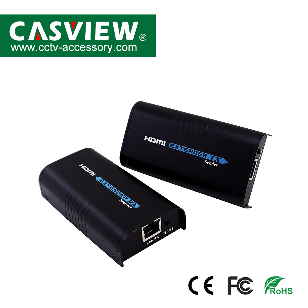 This HDMI extender over cat5e/6 cable is designed to convert HDMI signal to standard TCP/IP and transimit by internet cable or Lan.With the advantage of TCP/IP standard,it can transmit HDMI signal source from HD STB,DVD,for PS3,HDMI display card etc to HD projector, DLP,LCD,LED and other audio visual equipments