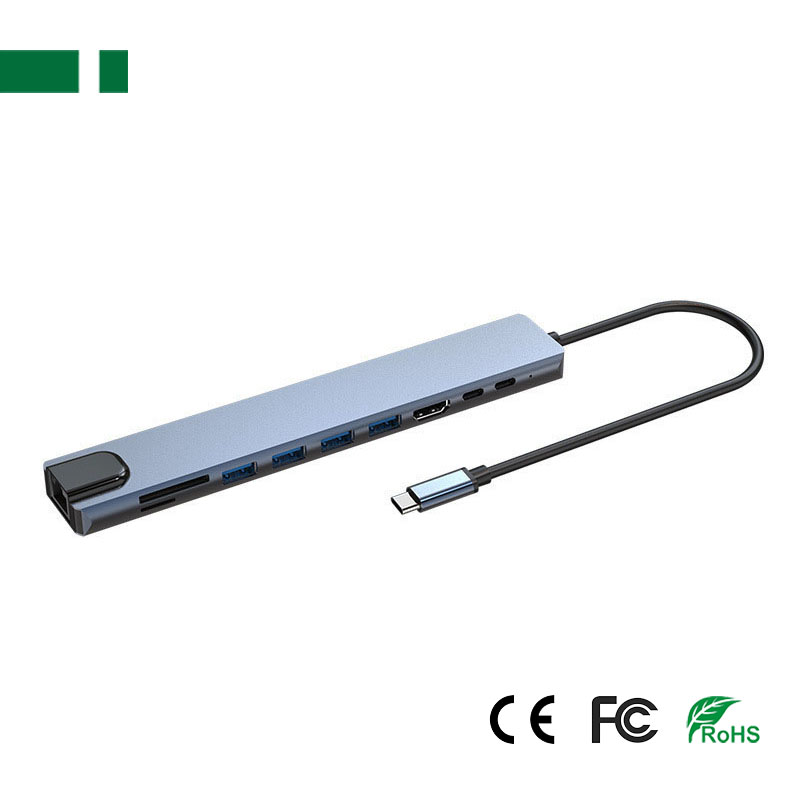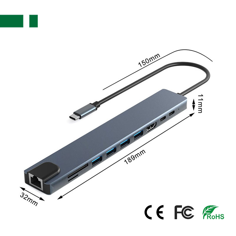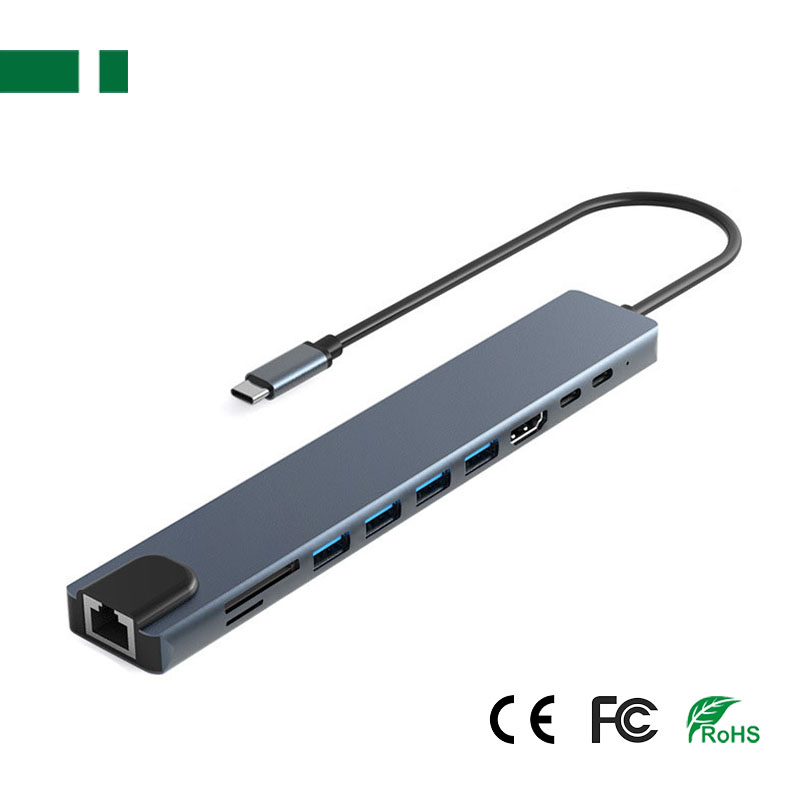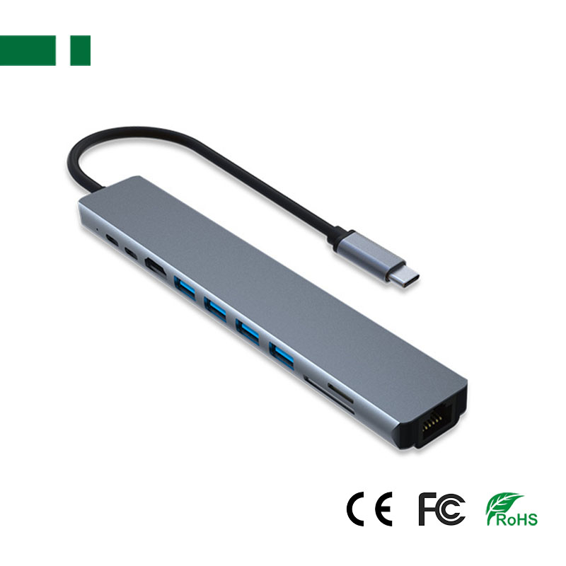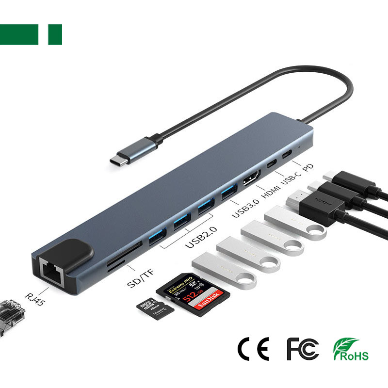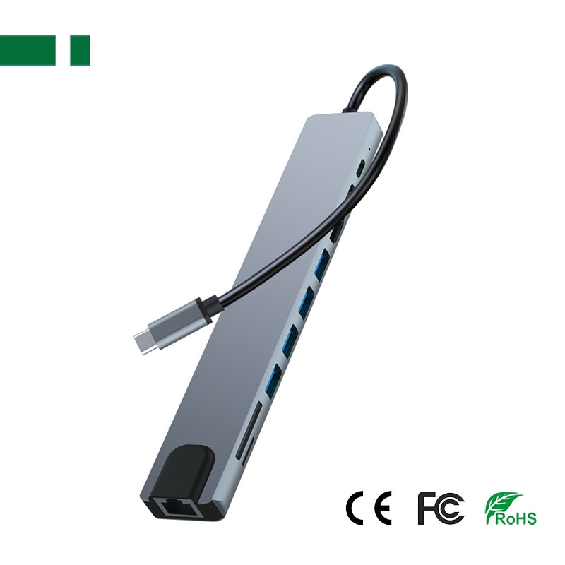 CHM-TC1001 USB 3.1 Type-C to HDMI+RJ45+ USB3.0+3*USB2.0+USB-C+SD+TF+PD Adapter (10 in 1);