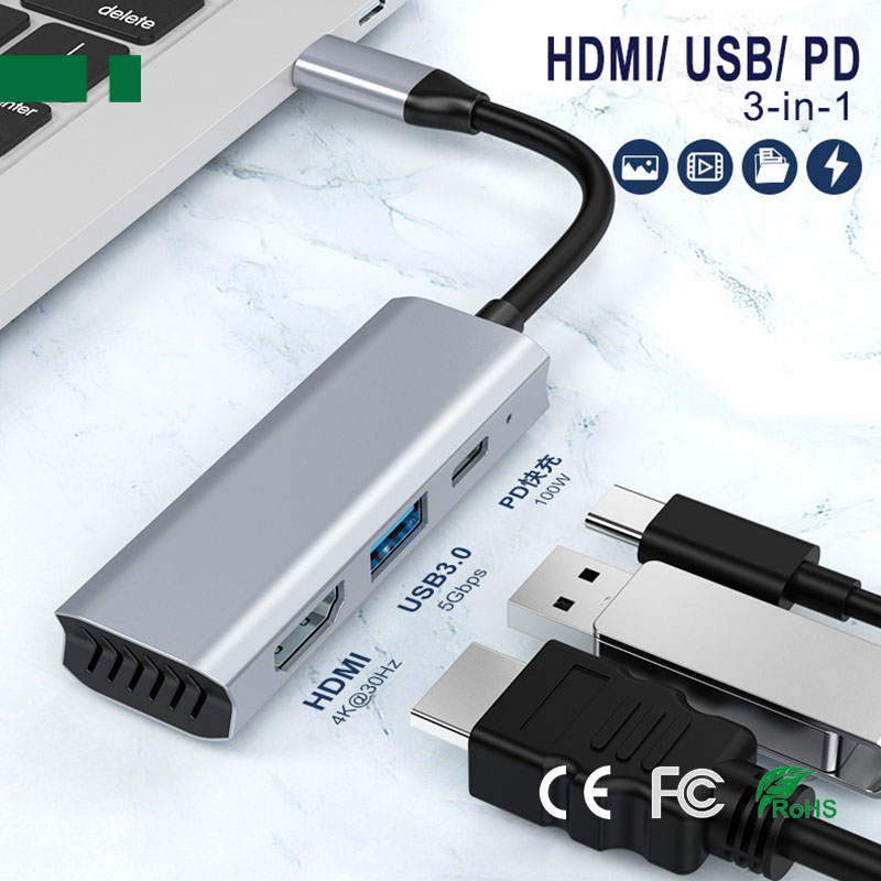 Type-C HUB USB C To HDMI Cable Adapter Splitter USB-C 3 IN 1 4K HDMI USB 3.0 PD Fast Charging Smart Adapter For MacBook Dell