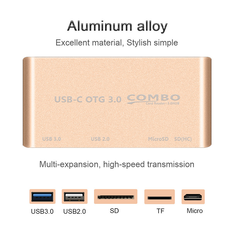 USB-C to USB3.0 & 2.0+SD+TF+Micro USB Adapter (5 in 1);