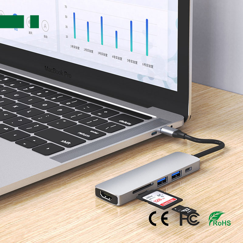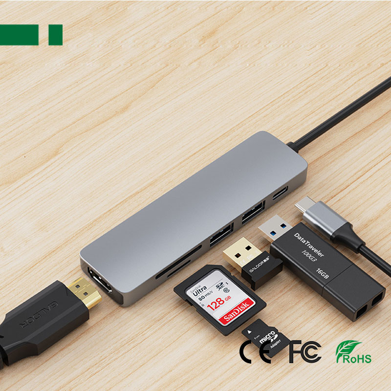 CHM-TC602 USB -C to HDMI+ USB3.0 & 2.0+SD+TF+PD Adapter (6 in 1)