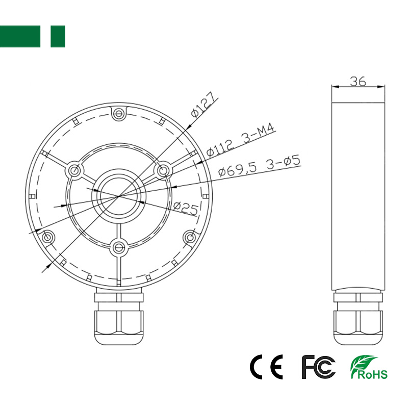 • Product description: Junction Box permits to put the power supply, the cables and the installation accessories inside of it. It has multiple holes for installation of different types of dome and bullet cameras.