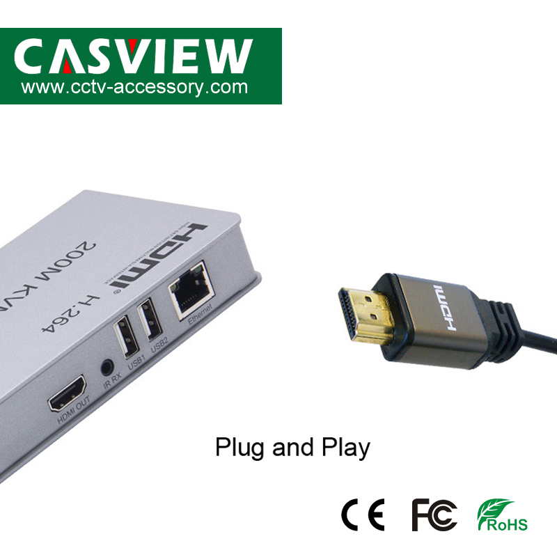 HDMI 200M Extender over IP is based on TCP/IP standard. It transmits your HD display with the high resolution up to 200 meters away from your DVD or computer source by using one CAT5e/6 cable.
