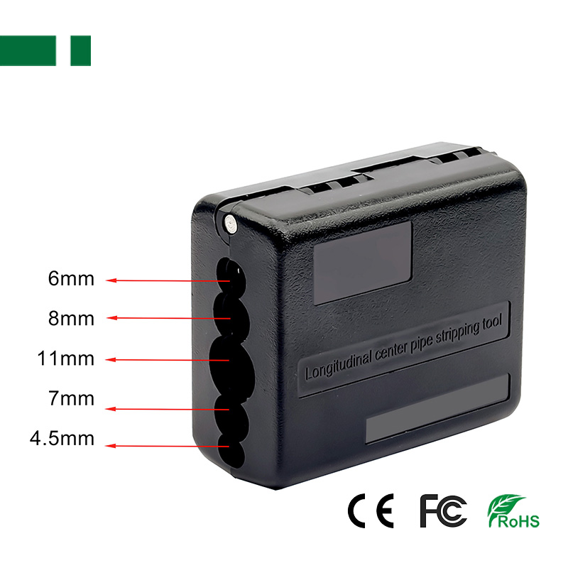 - Product description: The open structure, with five different sizes of guide grooves and ten sharp blades, can be used for longitudinal stripping of fiber bundle tubes with diameters of 4.5mm, 6mm, 7mm, 8mm and 11mm.