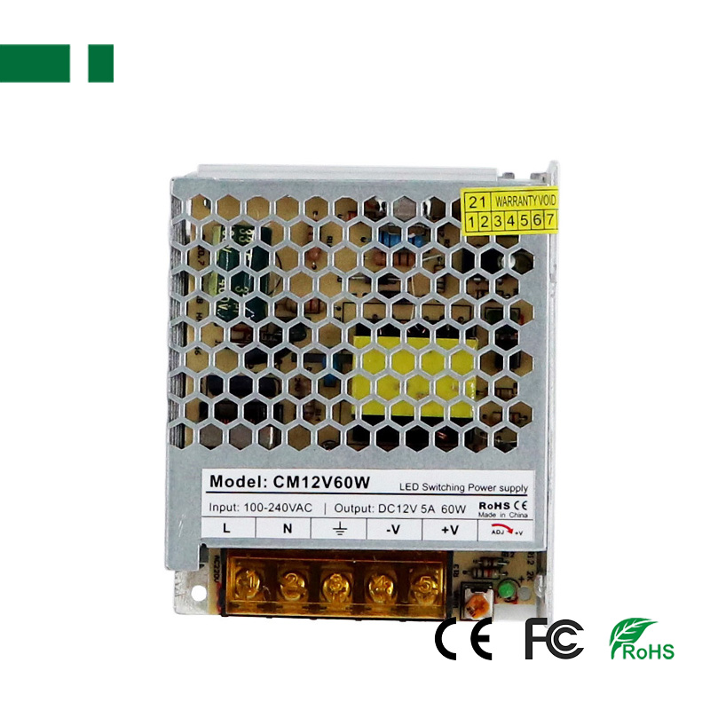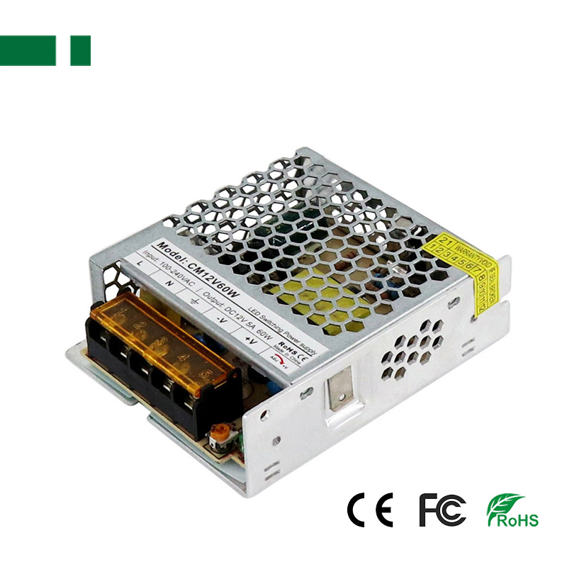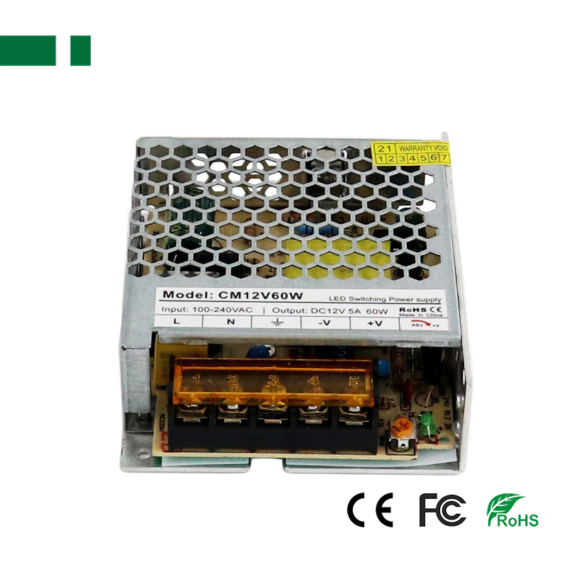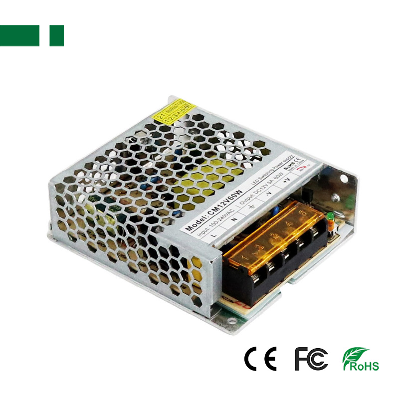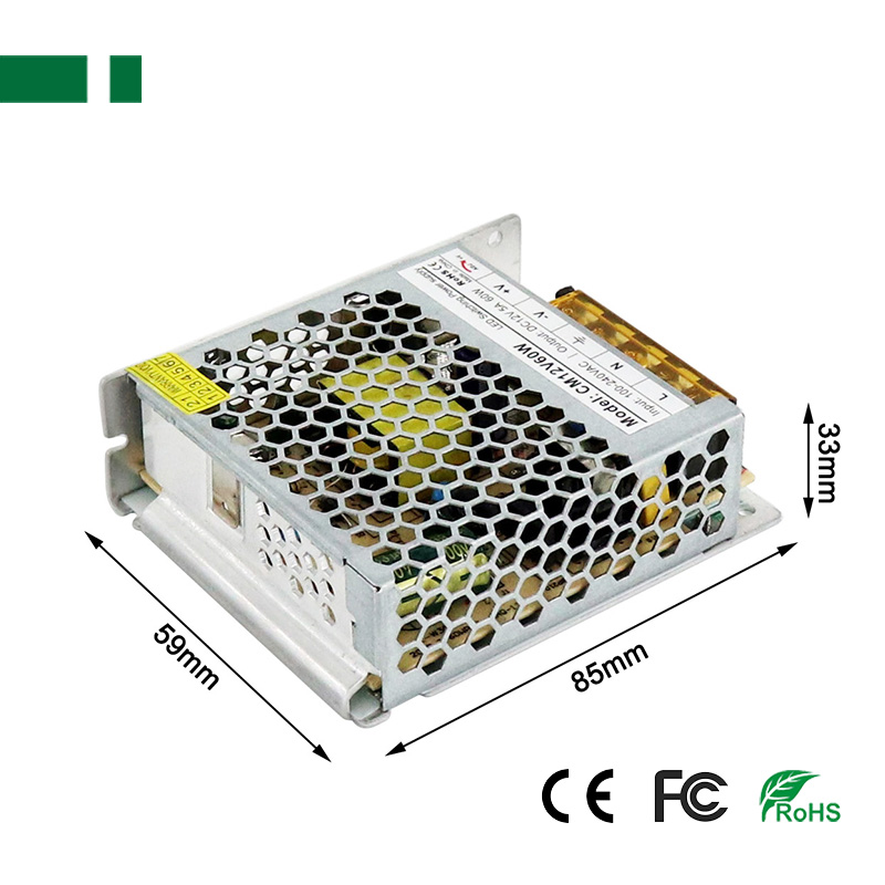 | CM12V60W | DC12V 5A 60W | 180~260VAC | 0.27A/ 230V | 59*85*33mm | 180g |