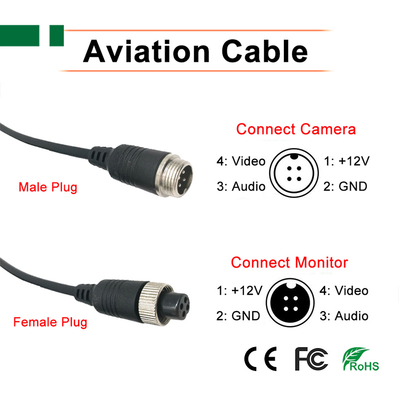 4 pin aviation video extension cable, high quality and exquisite workmanship, can be widely used in RV, Truck, Tanker Truck , Semi-truck, Trailer, Horse Trailer, Bus, Motorhome, Farm Harvester Tractor, Caravans , Van, Long-distance Car for connecting backup camera system, surveillance CCTV system.