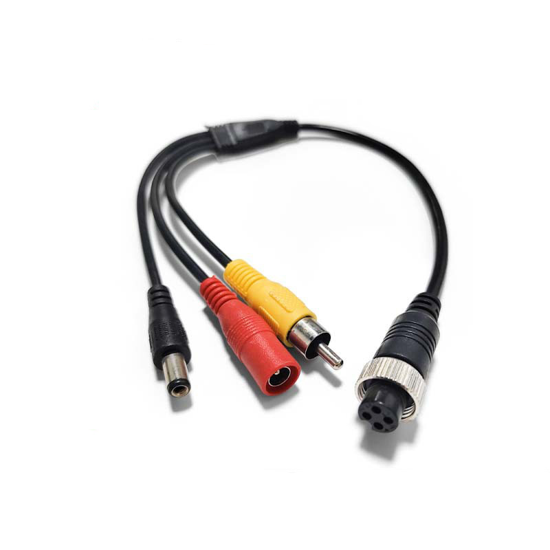 • M12 4Pin Aviation Female to AV Male+DC Male+DC Female Cable