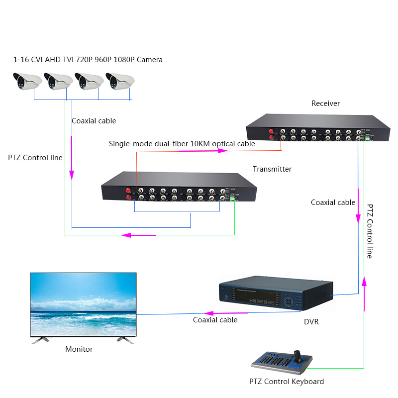 16 channels HD-CVI/ TVI/ AHD Coaxial HD Fiber Converter