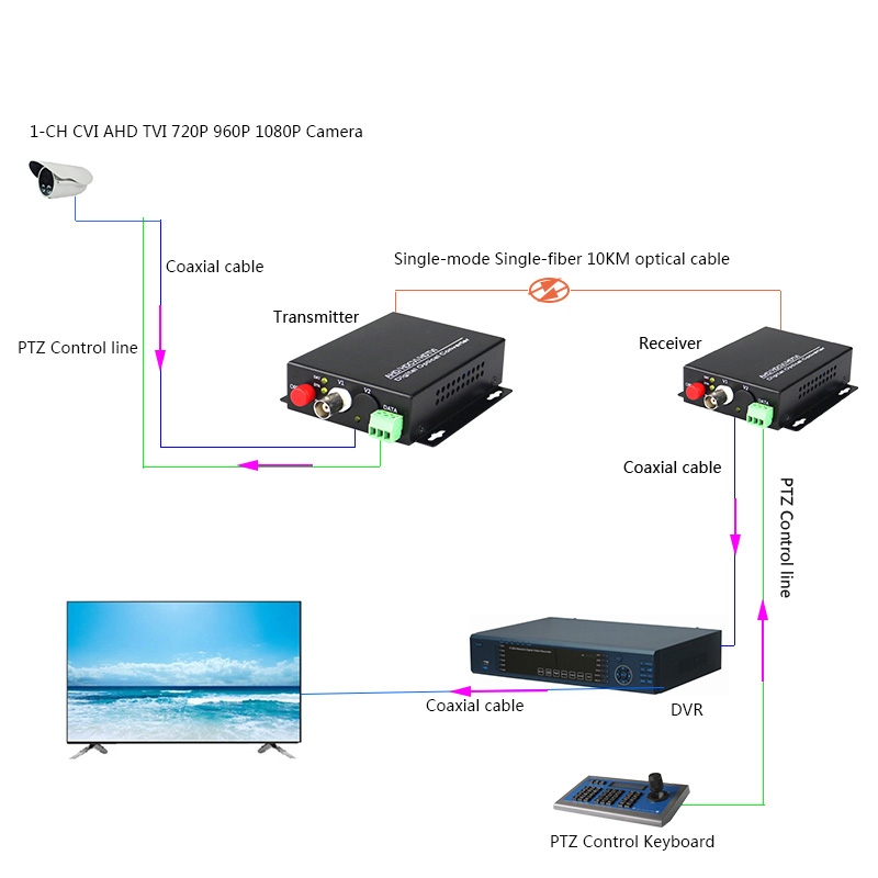 1 channel HD-CVI/ TVI/ AHD Coaxial HD Fiber Converter