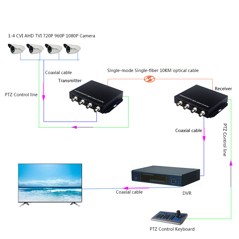 4 channels HD-CVI/ TVI/ AHD Coaxial HD Fiber Converter