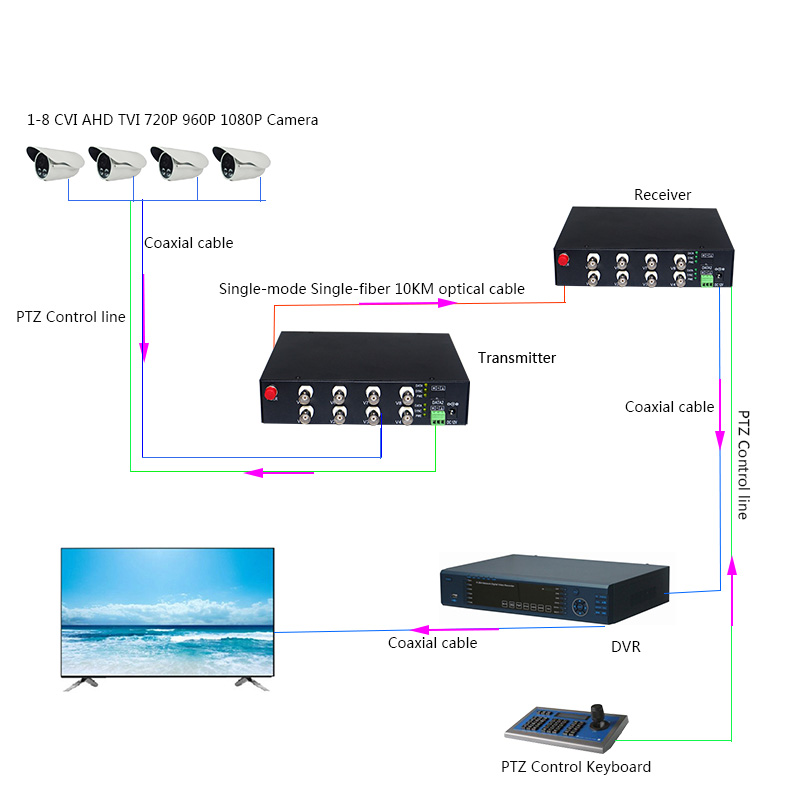 8 channels HD-CVI/ TVI/ AHD Coaxial HD Fiber Converter