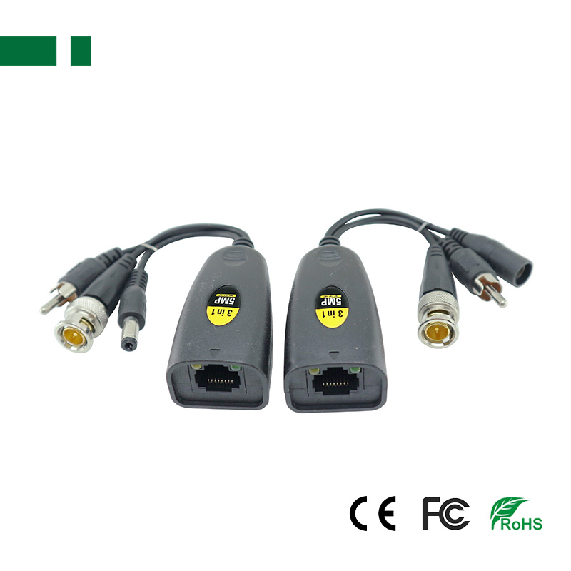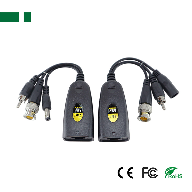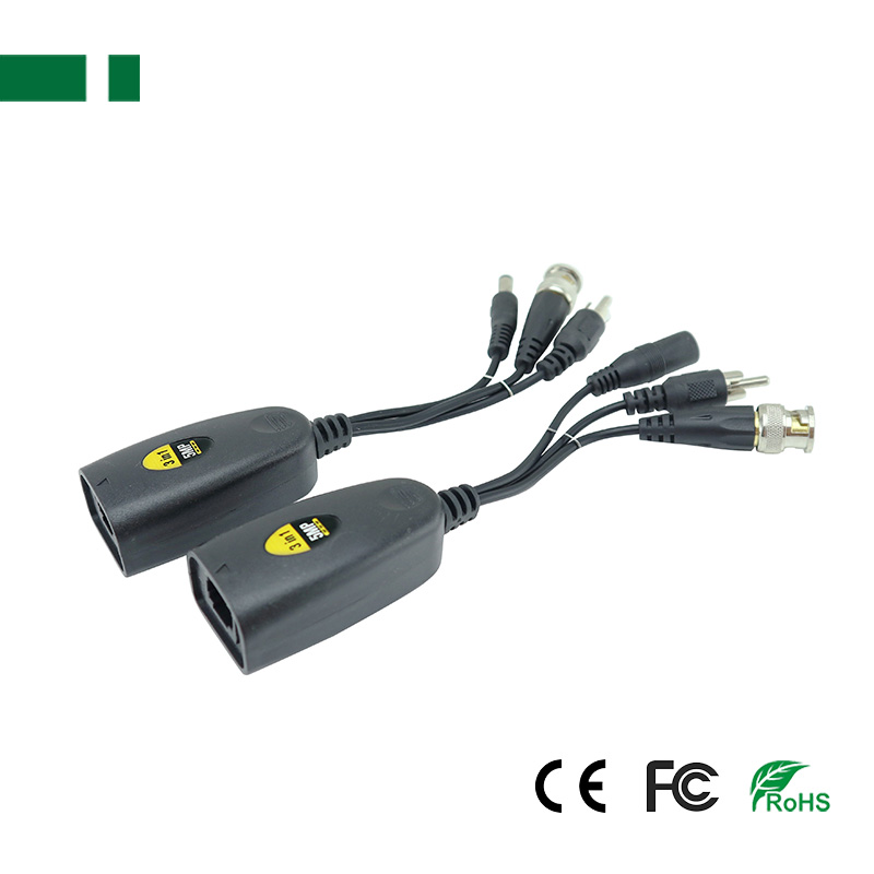 4. 3-in-1 Male BNC and DC Power and RCA Audio Connector to RJ45 Connector;