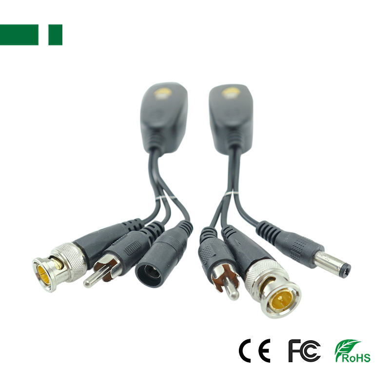 Connector BNC Male + DC Power to RJ45 Connector BNC Male + DC Power + RCA Audio to RJ45
