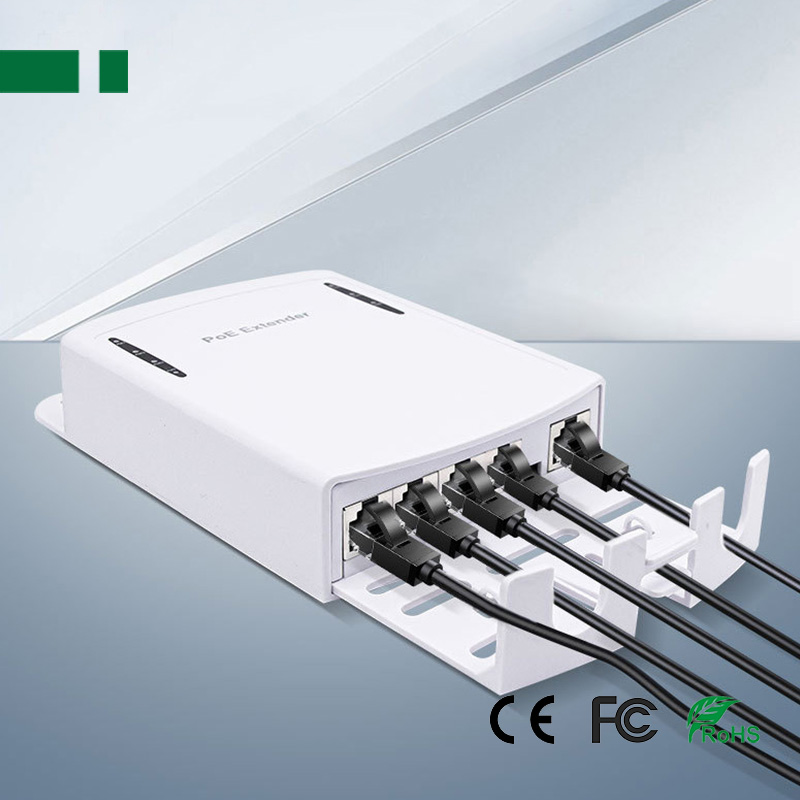 The POE Extension Device provides 4-Port 100Mbps power supply ports and 1-Port 100Mbps Up-link power supply port. These ports support IEEE 802.3af/at standard POE Power Supply, and the POE power of a single port is up to 30Watt.