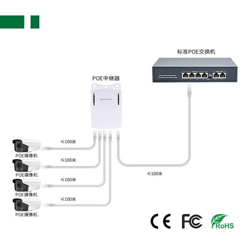 • CPE-1034R 1*4 100Mbps Rainy-proof POE Splitter Extender