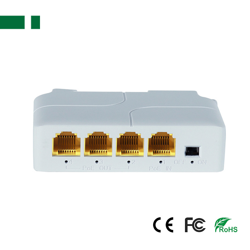 • Product description: The POE extension device provides three 100Mbps or 1000Mbps power supply ports and one 100mbps or 1000Mbps up-link power supply port.