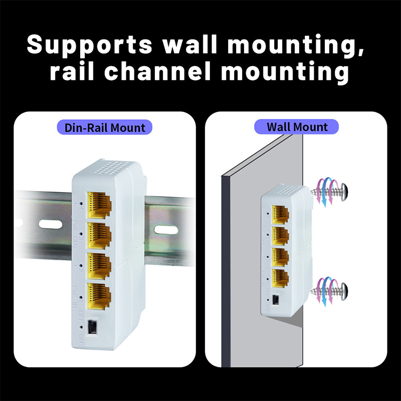 • 4 Ports 10/100/1000Mbps POE Cascade