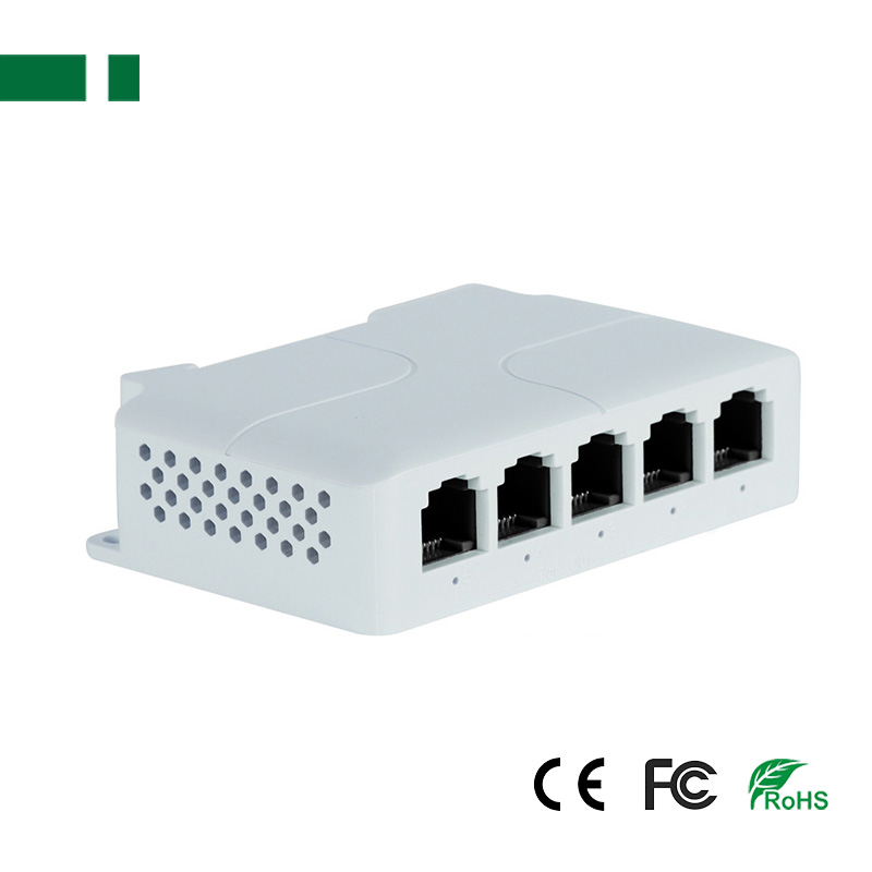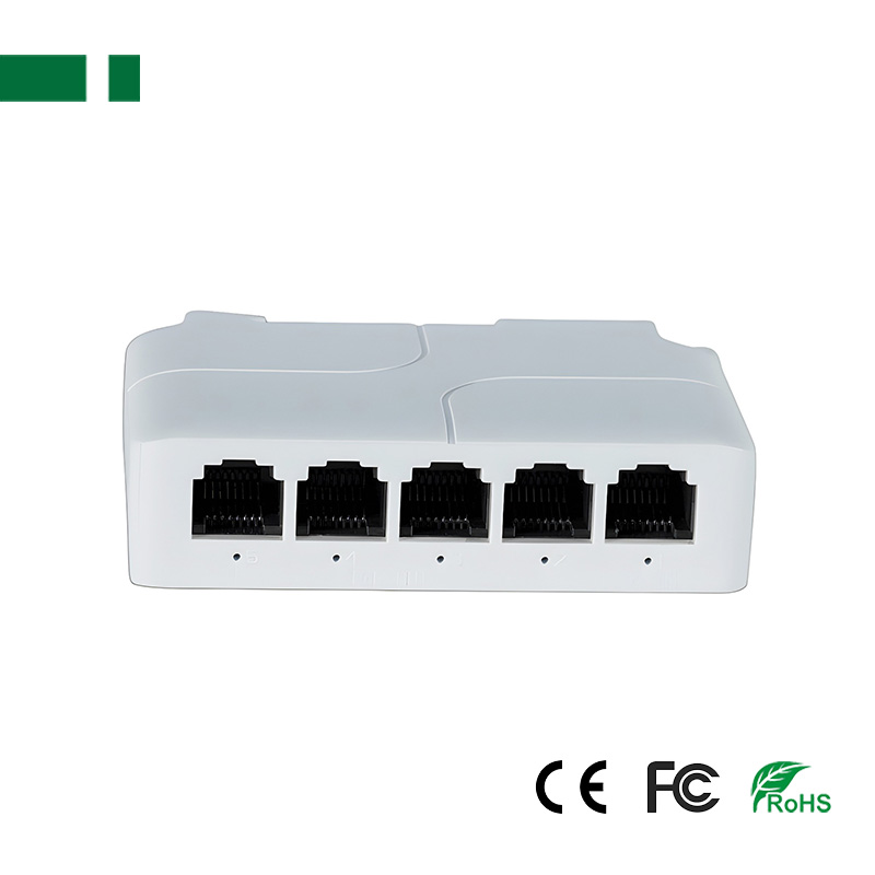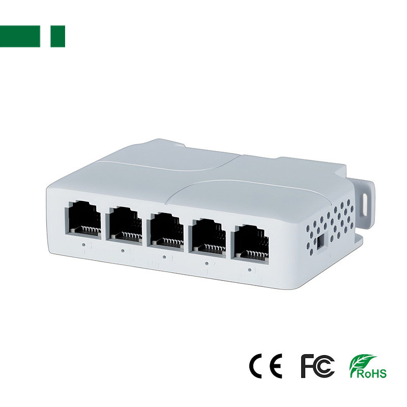 5 Ports 100Mbps POE Extender with Railing mounting;