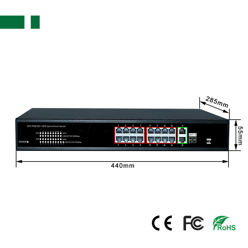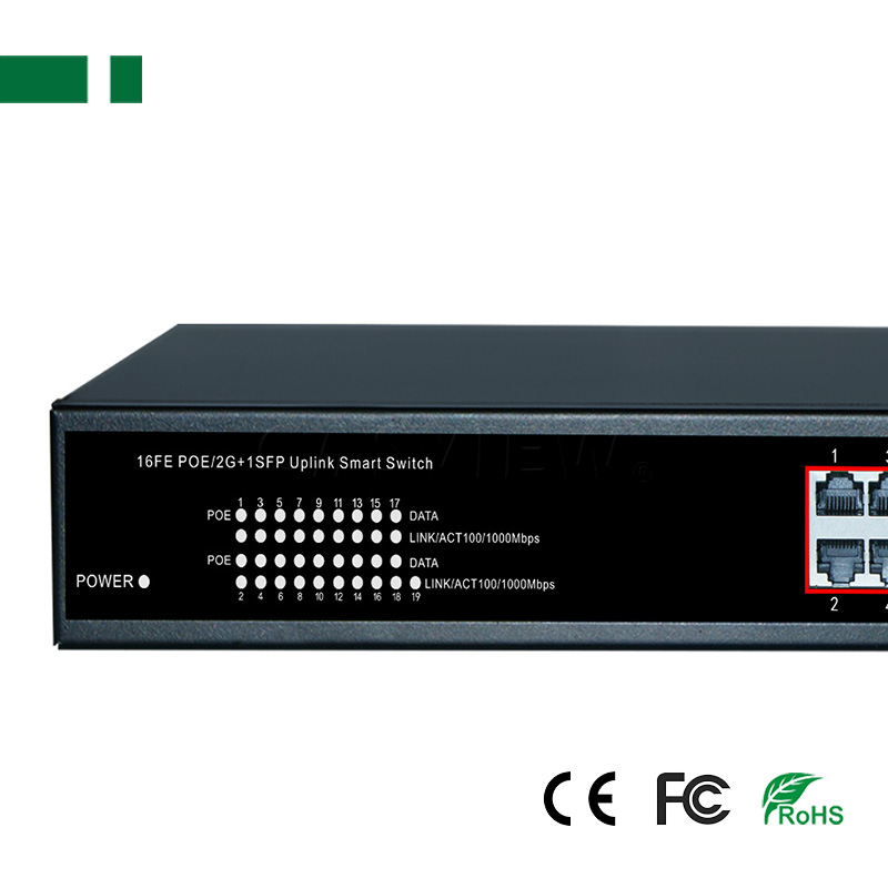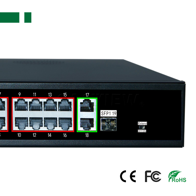 1. 16 ports 10/100Mbps POE Switch with 16 ports PoE ports and 2 uplink ports and 1 SFP port;