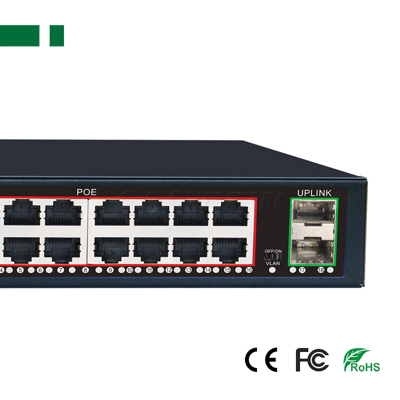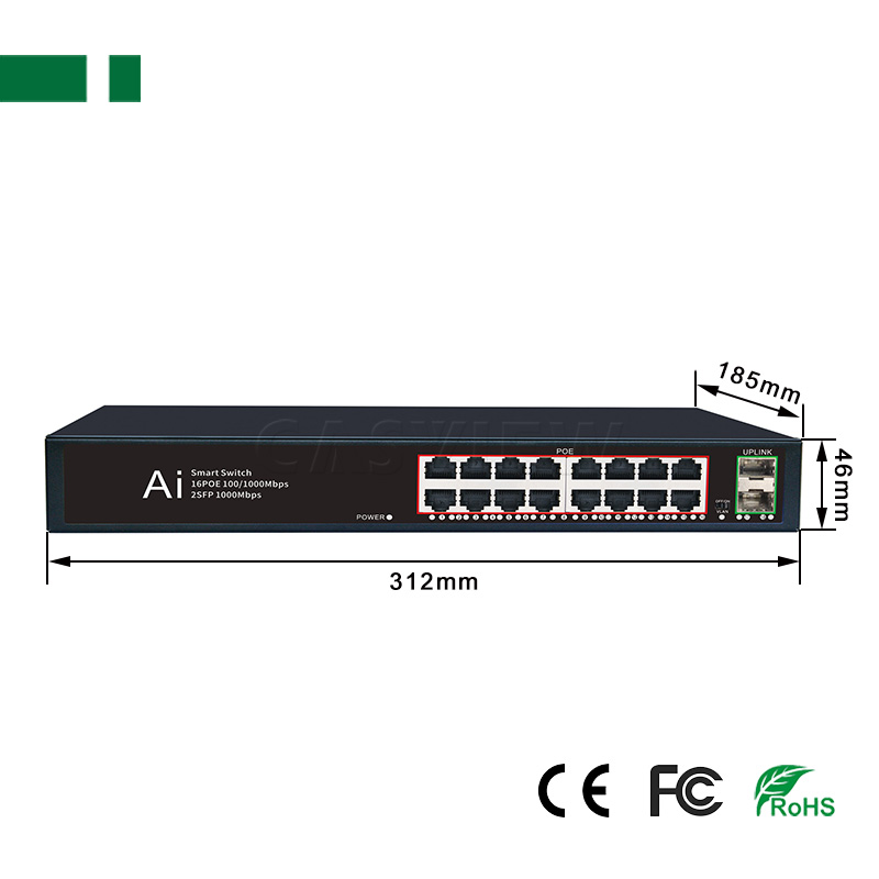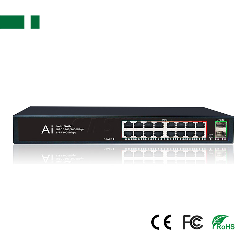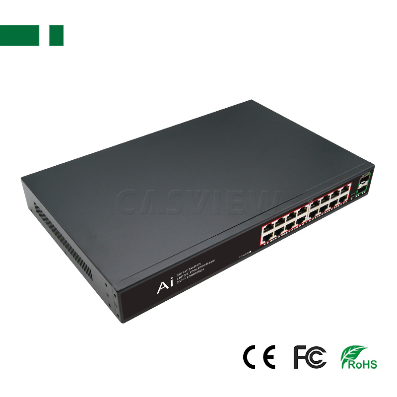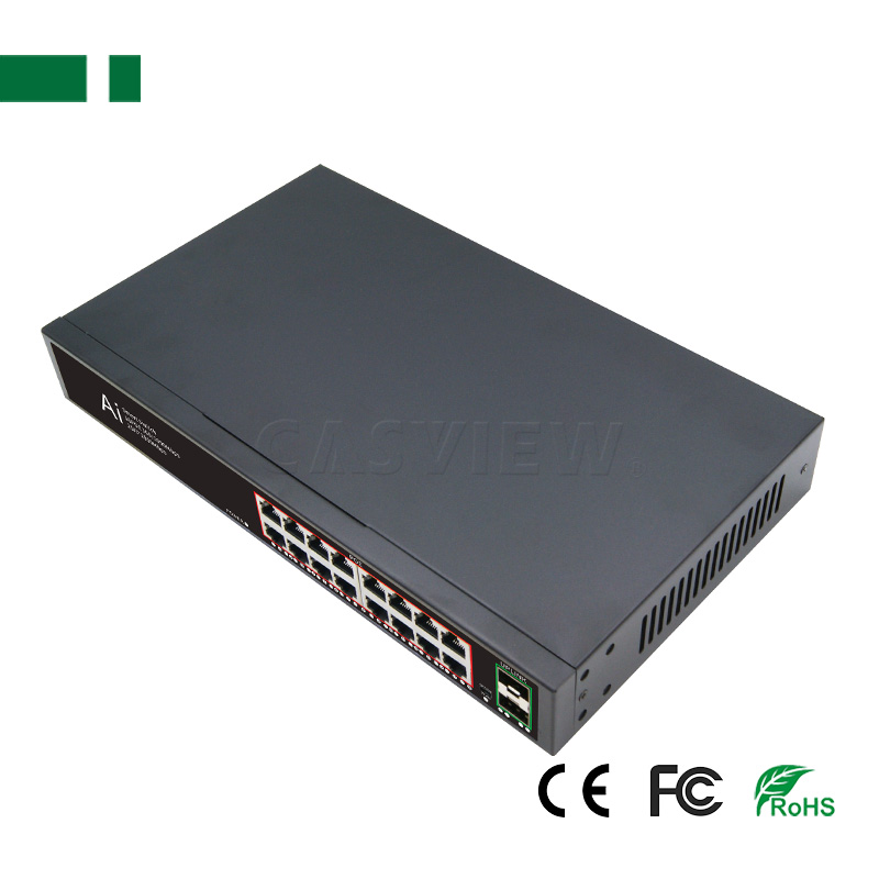 1. 16 ports 10/100/1000Mbps POE Switch with 16 ports PoE ports and 2 SFP ports;