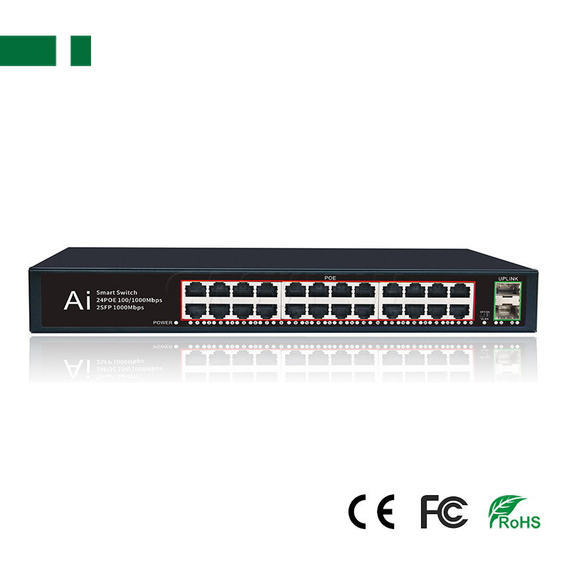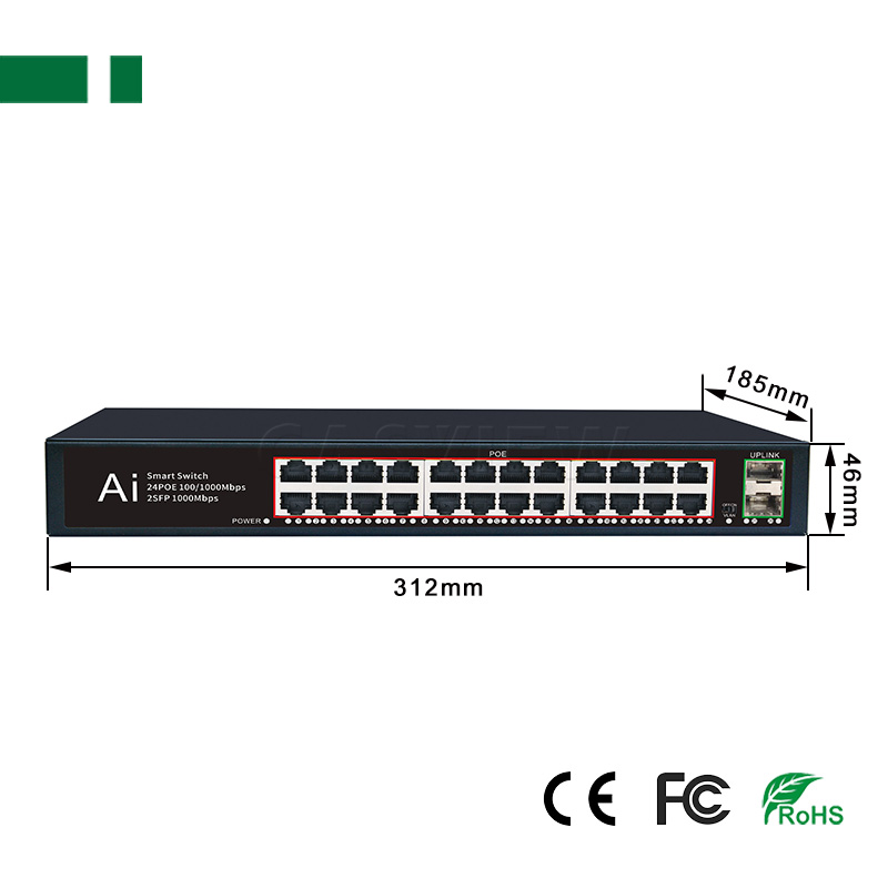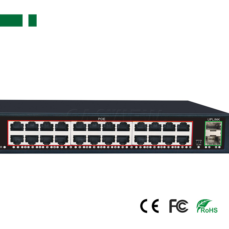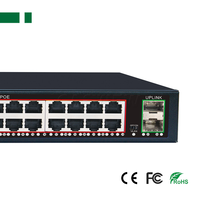 1. 24 ports 10/100/1000Mbps POE Switch with 24 ports PoE ports and 2 SFP ports;