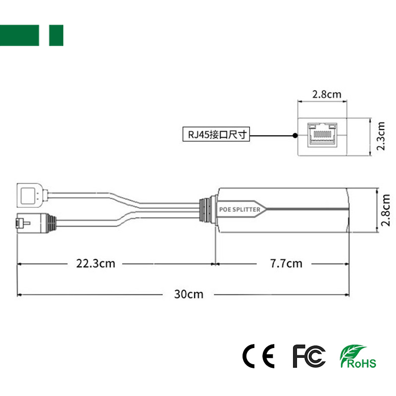 100Mbps & 1.0Gbps DC48V-to-DC5V POE Splitter Cable