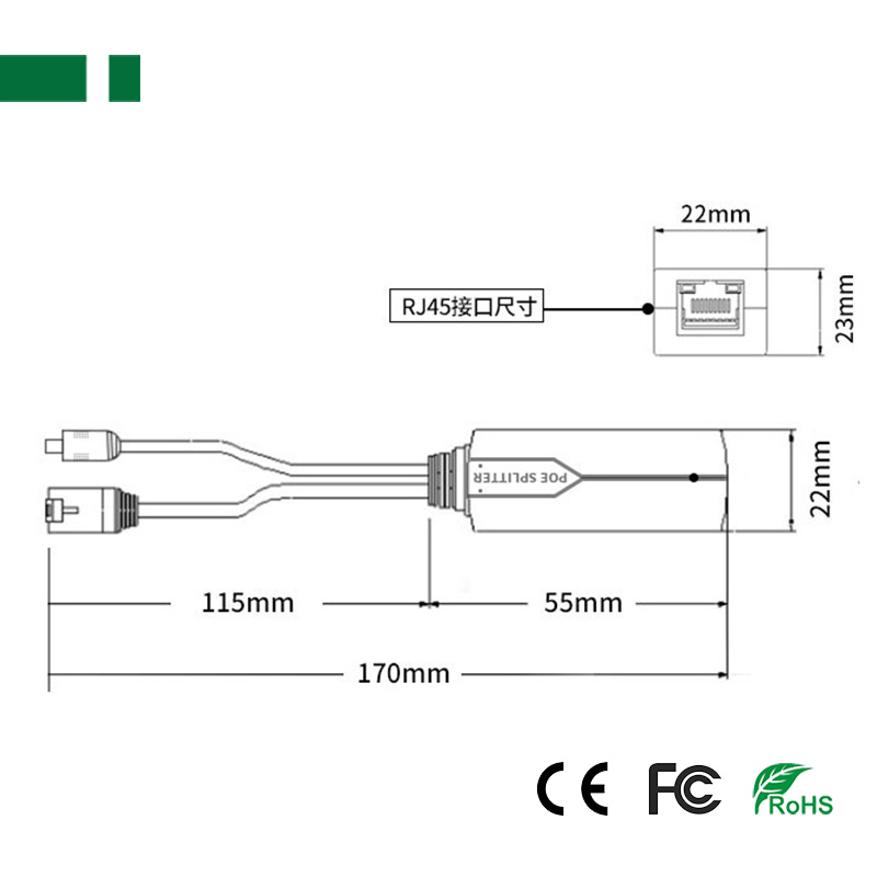 ● Ports: RJ45(PoE) + RJ45(LAN) + DC Male Plug Interface;