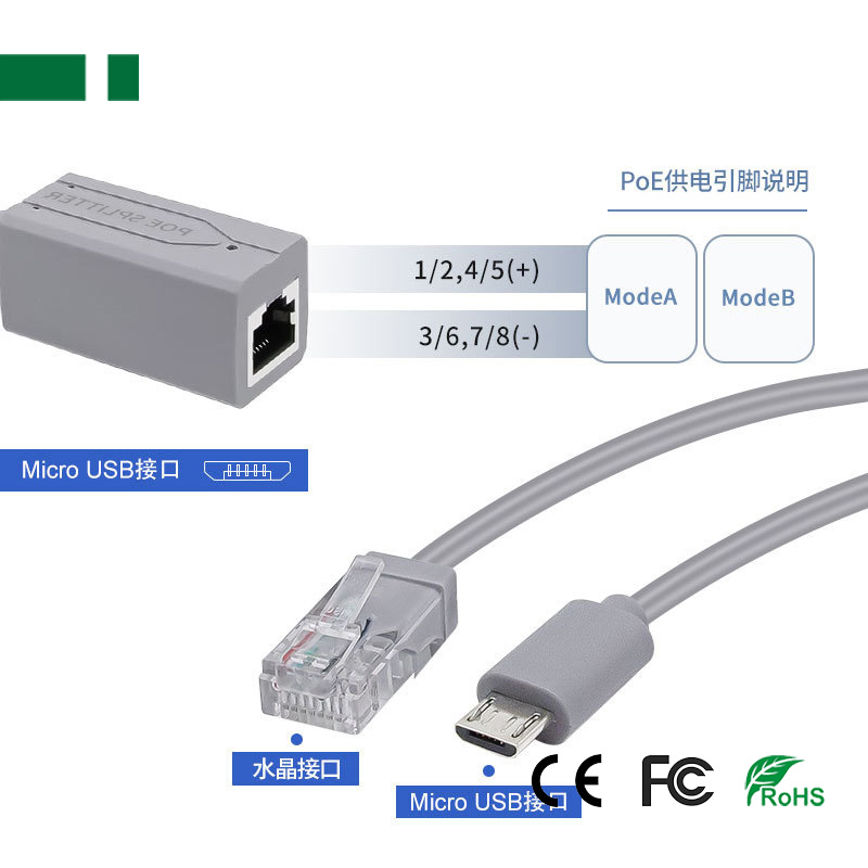 • CPOE-09MU DC48V-to-DC5V 100Mbps POE Cable with Micro USB Interface