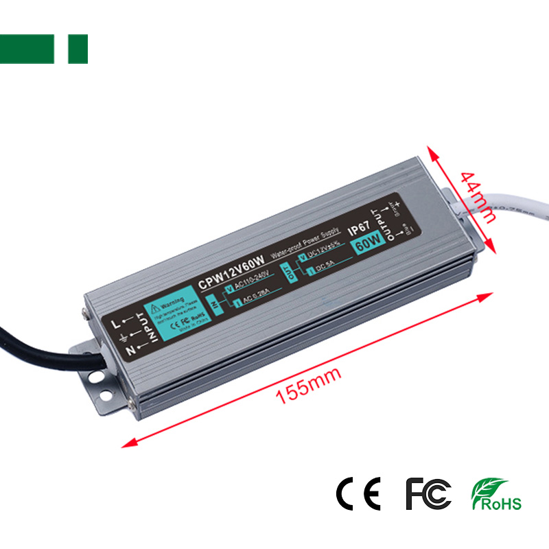 | CPW12V60W | DC12V 5A 60W | 90~240VAC | 0.56A/115V, 0.28A/230V | 155*44*20mm | 260g |